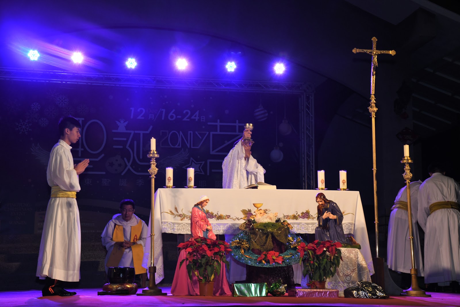 屏東縣萬巒鄉天主教萬金聖母聖殿,平安夜送聖音後,晚上八點四十八分回到聖殿,即往殿後廣場,進行平安夜彌撒。就位後,彌撒在神父淨場後開始,並有天主聖言開講,上演耶穌誕生劇,彌撒後,送聖體活動,分三隊,教徒排隊領取,場面莊嚴溫馨。